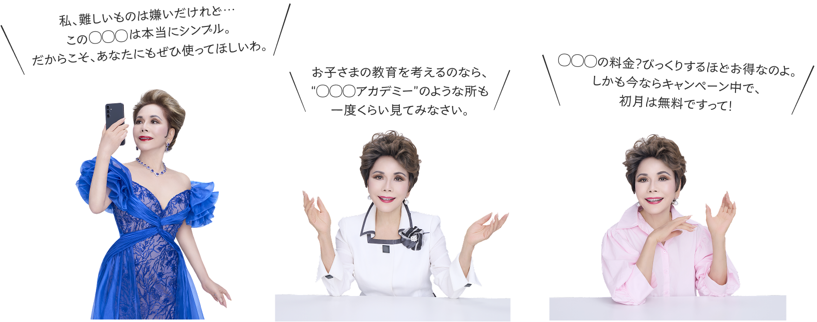 ただし、デヴィ夫人ご本人の“実際の使用・愛用を想起させる表現”や、誤解を招く内容はお受けできません。